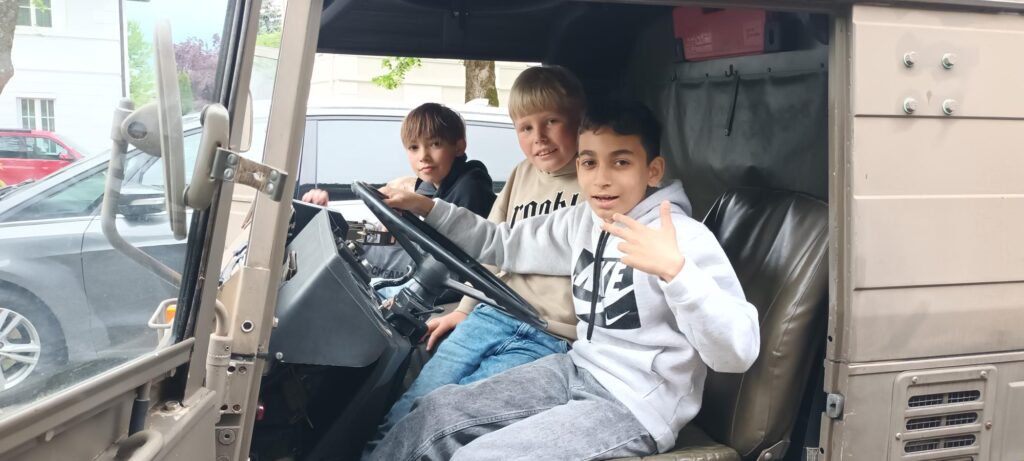 Im Mai waren Soldaten des Bundesheeres zu Besuch in den 4. Klassen und stellten den Kindern Ausrüstung und sogar ein Fahrzeug vor. Dieser außergewöhnliche „Besuch“ begeisterte alle Kinder.