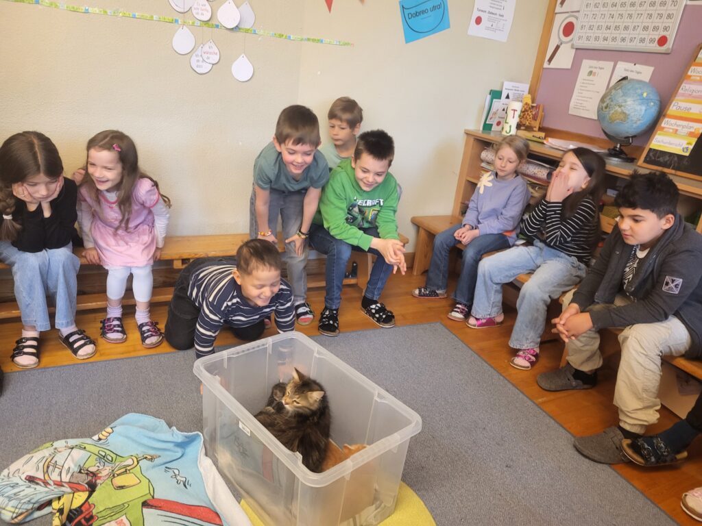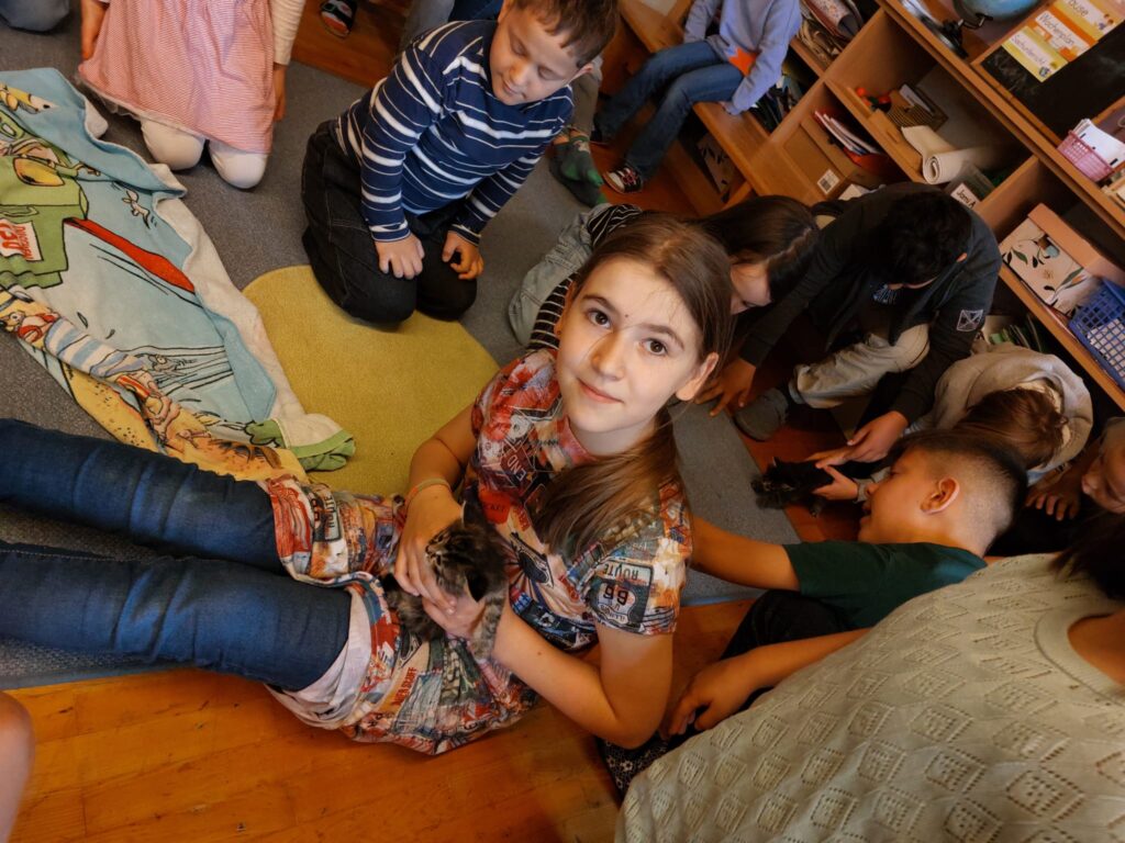 Fünf zuckersüße Katzenbabys und ihre Mama haben für große Augen, leises Schnurren und viele glückliche Gesichter gesorgt! Die kleinen Fellnasen durften gestreichelt, bestaunt und sogar ein bisschen geknuddelt werden. – Ein unvergessliches Erlebnis für alle großen und kleinen Tierfreunde. Ein herzliches Dankeschön an Gudrun, die uns diesen besonderen Besuch ermöglicht hat.