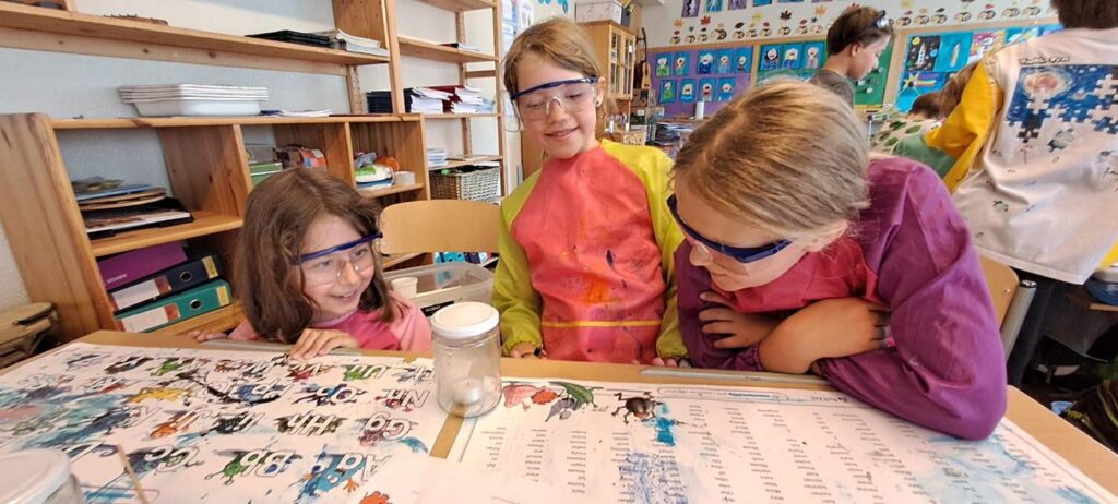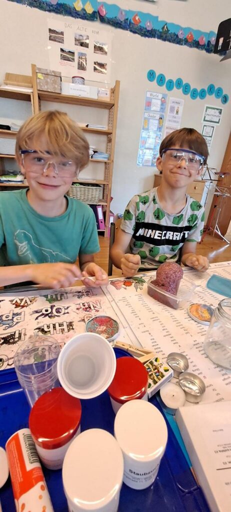 Große Freude am Experimentieren mit dem Chemiekasten hatten die Kinder der 3b. By Nicol SadlederJuni 11, 2025