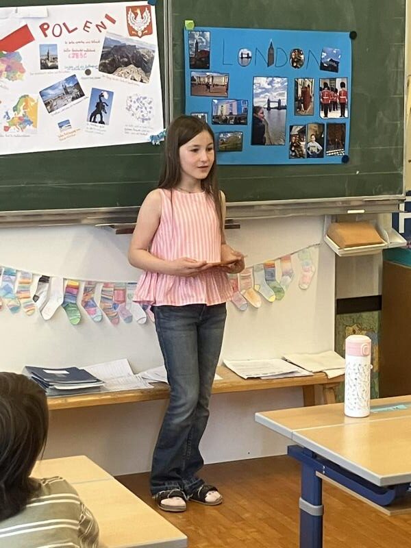 Mit großem Interesse hörten die Kinder der 3b dem Referat ihrer Mitschülerin über einen Londonurlaub in den Osterferien zu – Big Ben, Tower Bridge, Buckingham Palace, King Charles und natürlich Harry Potter, da wären wir gerne dabei gewesen!