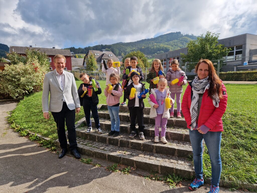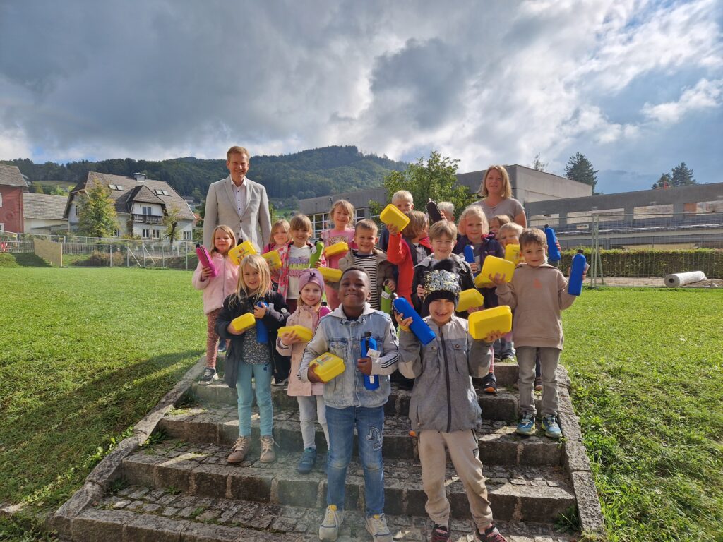 Auch heuer überreichte unser Bürgermeister Dr. Markus Ringhofer den Schulanfängern und Schulanfängerinnen wieder Trinkflaschen und Jausenboxen. Eine nachhaltige Maßnahme zur Müllvermeidung und Förderung umweltbewusster Gewohnheiten über die sich die Kinder sehr gefreut haben.