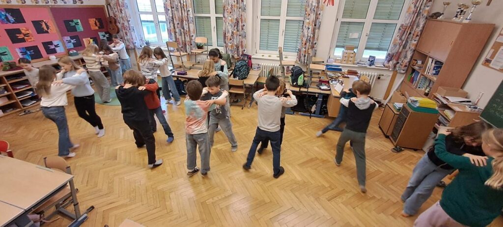Anlässlich des 200. Geburtstages des Walzerkönigs Johann Strauß am 25. Oktober beschäftigten sich die Kinder der 4b mit dem Leben und den Werken des berühmten Komponisten. Selbstverständlich durfte da das Tanzen nicht fehlen und nach den ersten Übungen hieß es dann für alle: Alles Walzer!