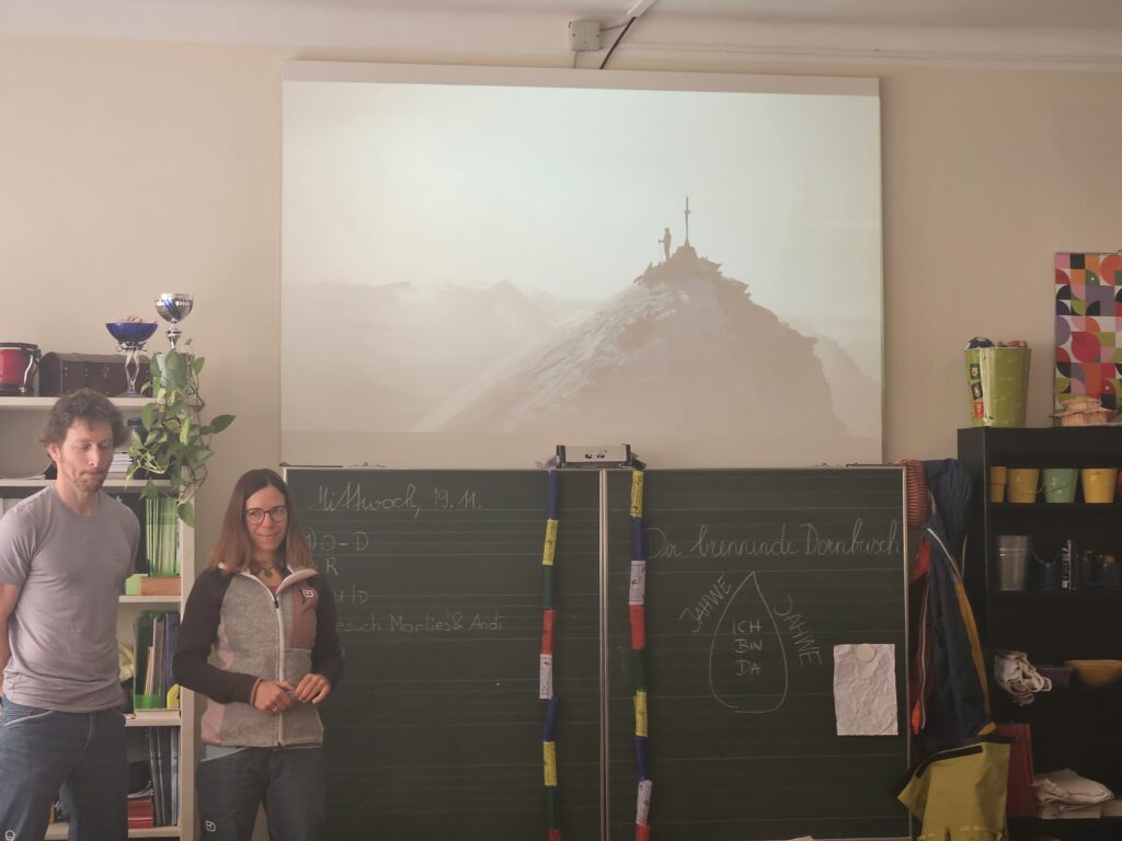 Nachdem sich die Kinder der 4. Klassen im Zuge ihrer Projekttage intensiv mit den Themen „Berge“ und „Bergsteigen“ beschäftigt hatten, war die Freude groß, als zwei begeisterte professionelle Bergsteiger aus dem Bezirk sie in der Schule besuchten. Andreas Lattner und Marlies Czerny gewährten den Kindern spannende Einblicke in die Welt des Bergsteigens, begeisterten mit atemberaubenden Fotos und Videos und zogen die Kinder mit ihrer Leidenschaft für Berge richtig in den Bann. Die Kinder lernten bei diesem tollen Vortrag nicht nur viel über die Alpen, die Länder und ihre Gipfel, sondern auch über die Auswirkungen des Klimawandels in Hinblick auf die Gletscher. Im Anschluss konnten sehr viele Fragen gestellt werden und man merkte den Kindern richtig an, wie fasziniert sie von dieser Thematik waren. Vielen Dank für euren Besuch!
