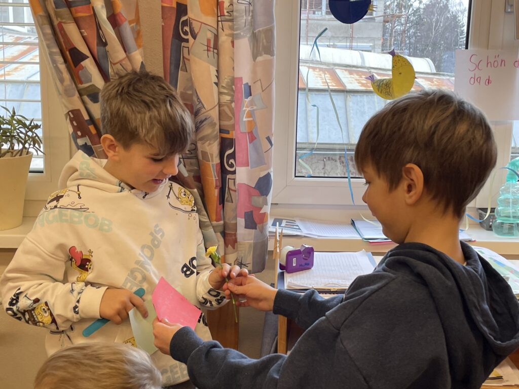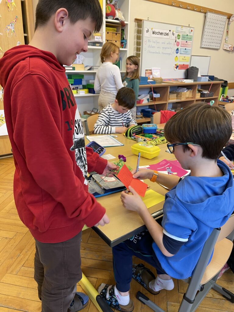 In der Jami A haben wir gelernt einander wertvolle Komplimente zu machen. Danach haben wir das gleich ausprobiert und in der Klasse schöne Worte füreinander gefunden – eine Blume gab es auch dazu : ) By Petra DirisamerFebruar 10, 2026