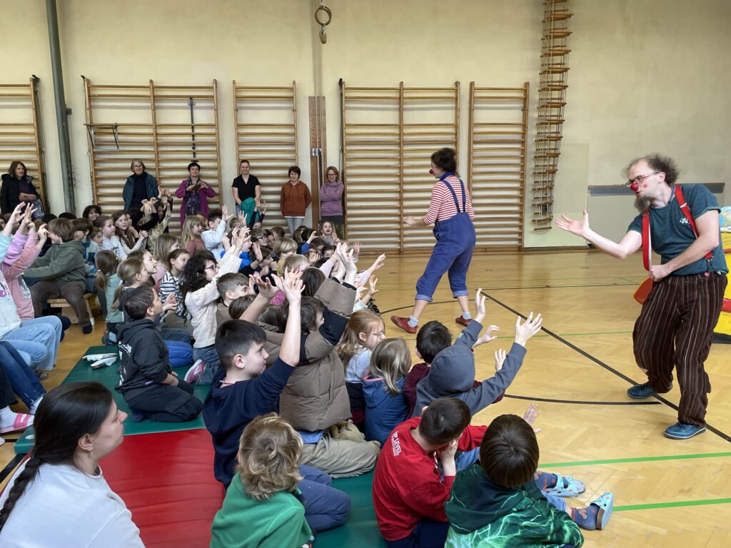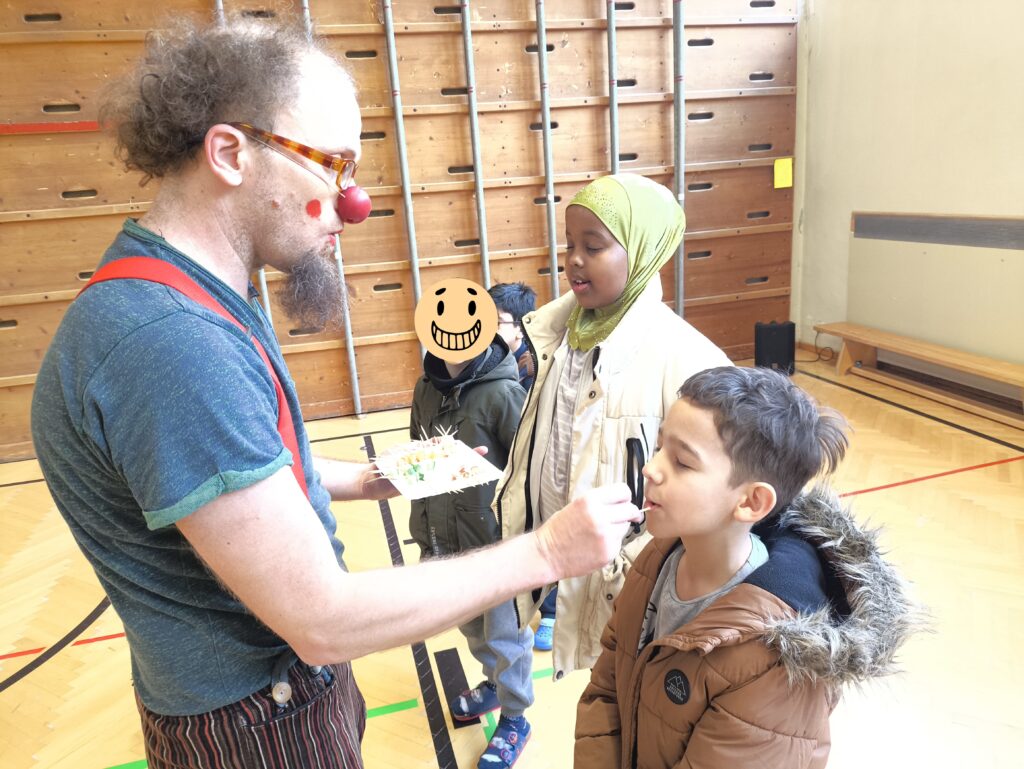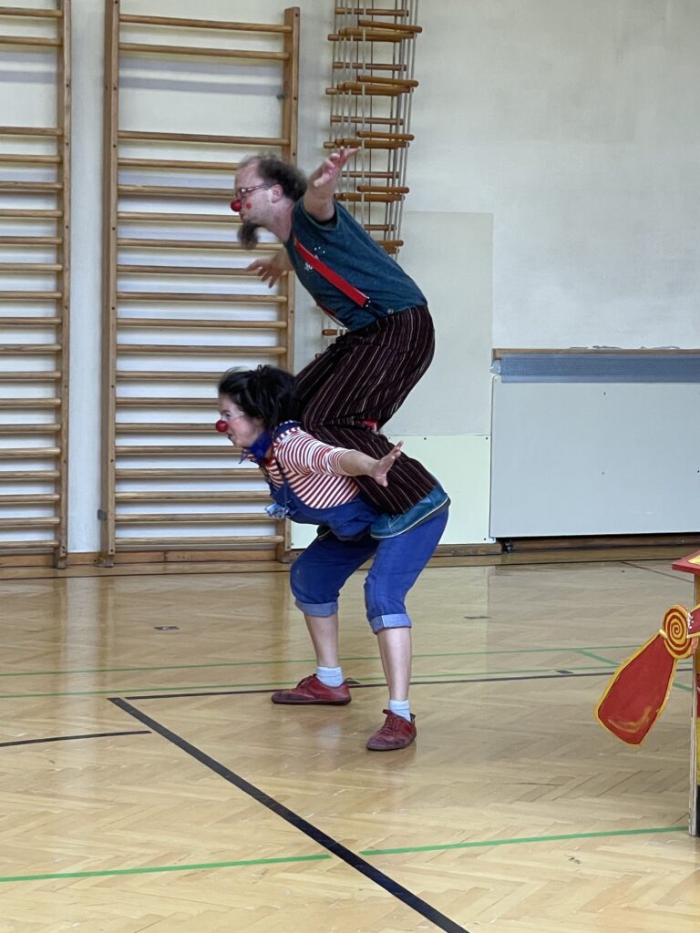 Den krönenden Abschluss des Faschings bildete das „Glückstheater“. Zwei fröhliche Clowns nahmen die Kinder mit auf eine fantasievolle Reise rund um die Welt. Mit viel Humor wurden die Kinder aktiv in das Geschehen eingebunden. Ob beim gemeinsamen Seilspringen oder beim Verkosten verschiedener Obstsorten aus aller Welt – die Begeisterung war spürbar.