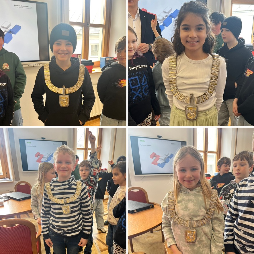 Im Rahmen des Heimatkunde-Unterrichtes durfte die 3.a Klasse den Bürgermeister im Rathaus besuchen. Das Haus wurde gemeinsam erkundet und im Sitzungssaal konnten nicht nur viele Fragen gestellt werden, sondern es gab auch noch eine gesunde Stärkung für die Kinder. Danke für diese interessanten Einblicke!