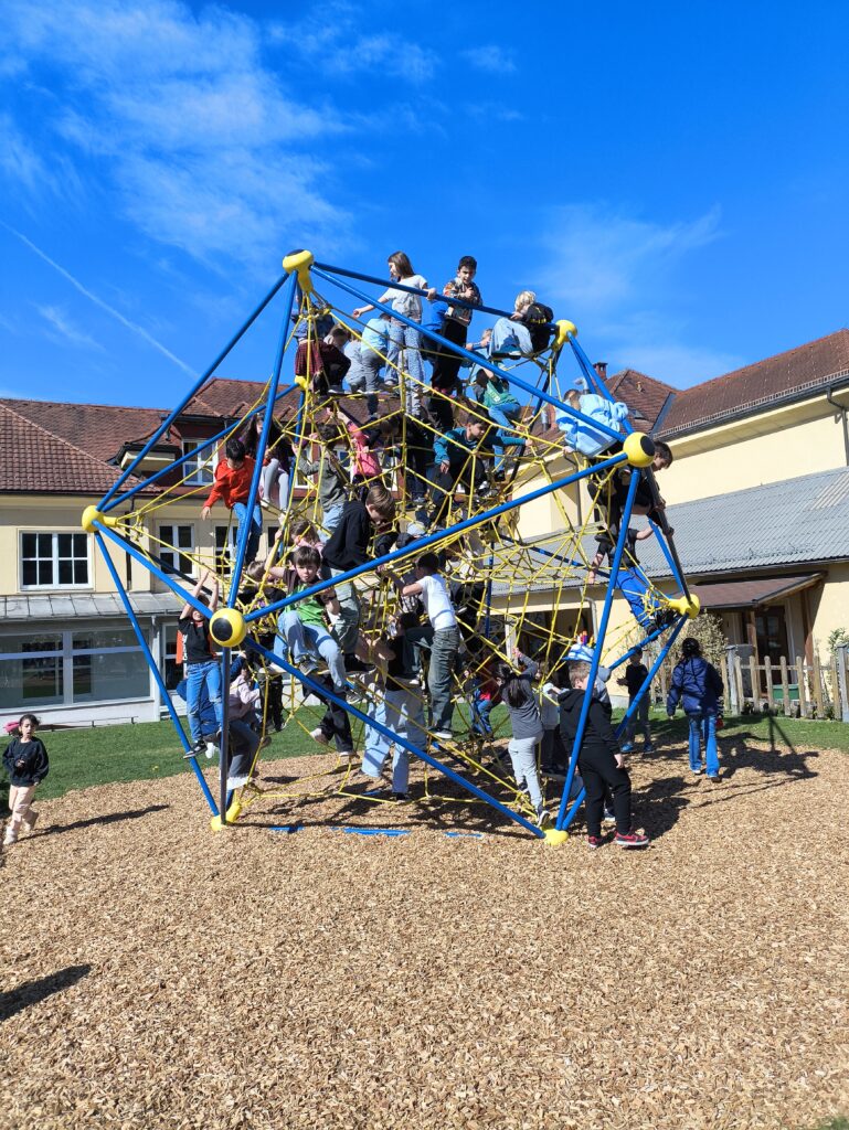 Endlich wurde unser neuer Spielplatz eröffnet, der den Kindern mehr Bewegung, Erholung und Freude im Schulalltag bietet. Ein Spielplatz spielt eine zentrale Rolle für die körperliche, soziale und psychische Entwicklung von Kindern. Alle Geräte wurden von den Kindern mit großer Freude sofort auf Herz und Nieren getestet.