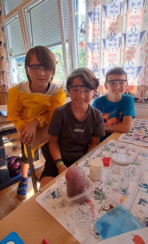Große Freude am Experimentieren mit dem Chemiekasten hatten die Kinder der 3b.