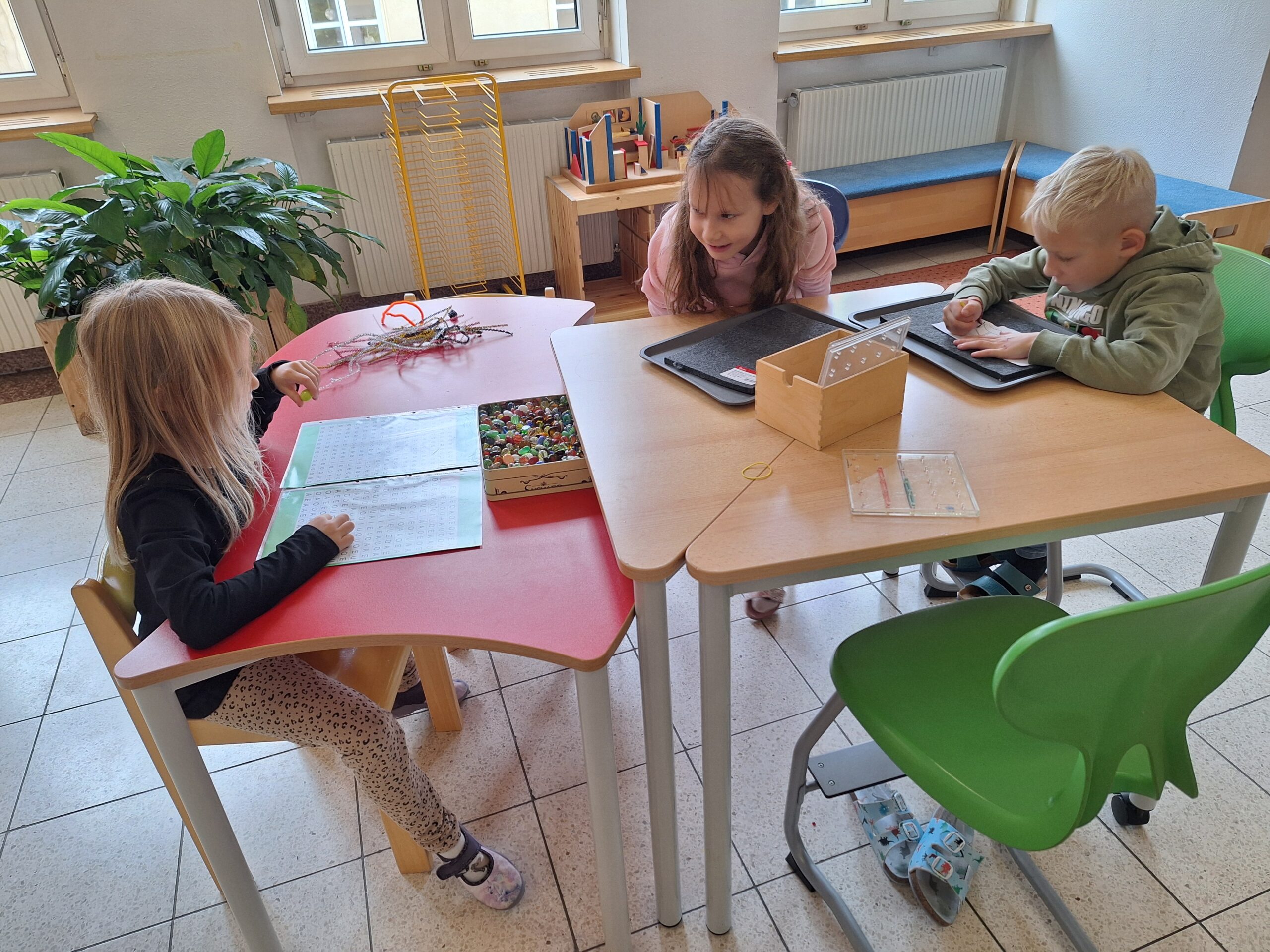 Die Kinder lernen wöchentlich einen neuen Buchstaben kennen und üben diesen an verschiedensten Stationen.