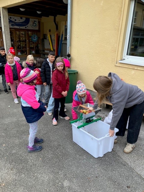 Zum Thema „Apfel“ hat die 1b gelernt, gebastelt, gesungen und schlussendlich noch Apfelsaft gepresst.